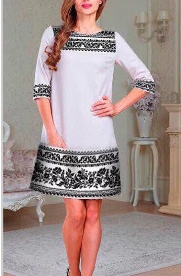 Заготовка під вишивку сукні. Заготовка НЕ ПОШИТА. Вона складається з прямокутних відрізків тканини, які після вишивки необхідно розкроїти та сшити по своєму фасону і розміру. Розміри відрізків на заготовку - 75х115 см - 2 шт (на перед і спинку) для габардину і 70х115 см -2 шт, для домотканого полотна. Відрізки тканини на рукава - 60х75 см - 2 шт, для габардину і 60х70 см - 2 шт, для домотканого полотна. На темних тканинах друку немає! (До тканини додається водорозчинний флізелін з надрукованою схемою). Будь ласка, в коментарях до замовлення вказуйте бажаний колір тканини.