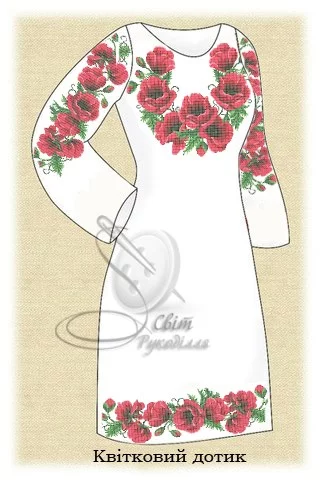 Заготовка під вишивку сукні. Заготовка НЕ ПОШИТА. Вона складається з прямокутних відрізків тканини, які після вишивки необхідно розкроїти та сшити по своєму фасону і розміру. Розміри відрізків на заготовку - 75х115 см - 2 шт (на перед і спинку) для габардину і 70х115 см -2 шт, для домотканого полотна. Відрізки тканини на рукава - 60х75 см - 2 шт, для габардину і 60х70 см - 2 шт, для домотканого полотна. На темних тканинах друку немає! (До тканини додається водорозчинний флізелін з надрукованою схемою). Будь ласка, в коментарях до замовлення вказуйте бажаний колір тканини.