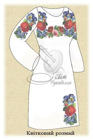 Заготовка під вишивку сукні. Заготовка НЕ ПОШИТА. Вона складається з прямокутних відрізків тканини, які після вишивки необхідно розкроїти та сшити по своєму фасону і розміру. Розміри відрізків на заготовку - 75х115 см - 2 шт (на перед і спинку) для габардину і 70х115 см -2 шт, для домотканого полотна. Відрізки тканини на рукава - 60х75 см - 2 шт, для габардину і 60х70 см - 2 шт, для домотканого полотна. На темних тканинах друку немає! (До тканини додається водорозчинний флізелін з надрукованою схемою). Будь ласка, в коментарях до замовлення вказуйте бажаний колір тканини.