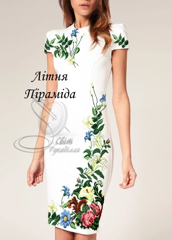 Заготовка під вишивку сукні. Заготовка НЕ ПОШИТА. Вона складається з прямокутних відрізків тканини, які після вишивки необхідно розкроїти та сшити по своєму фасону і розміру. Розміри відрізків на заготовку - 75х115 см - 2 шт (на перед і спинку) для габардину і 70х115 см -2 шт, для домотканого полотна. Відрізки тканини на рукава - 60х75 см - 2 шт, для габардину і 60х70 см - 2 шт, для домотканого полотна. На темних тканинах друку немає! (До тканини додається водорозчинний флізелін з надрукованою схемою). Будь ласка, в коментарях до замовлення вказуйте бажаний колір тканини.