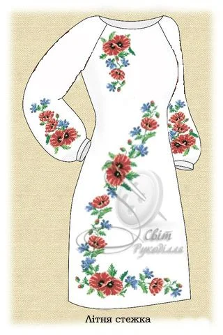 Заготовка під вишивку сукні. Заготовка НЕ ПОШИТА. Вона складається з прямокутних відрізків тканини, які після вишивки необхідно розкроїти та сшити по своєму фасону і розміру. Розміри відрізків на заготовку - 75х115 см - 2 шт (на перед і спинку) для габардину і 70х115 см -2 шт, для домотканого полотна. Відрізки тканини на рукава - 60х75 см - 2 шт, для габардину і 60х70 см - 2 шт, для домотканого полотна. На темних тканинах друку немає! (До тканини додається водорозчинний флізелін з надрукованою схемою). Будь ласка, в коментарях до замовлення вказуйте бажаний колір тканини.