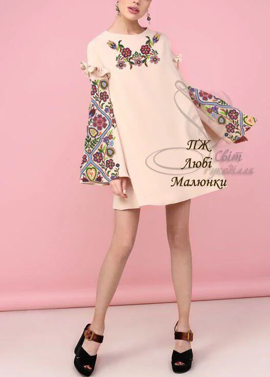 Заготовка під вишивку сукні. Заготовка НЕ ПОШИТА. Вона складається з прямокутних відрізків тканини, які після вишивки необхідно розкроїти та сшити по своєму фасону і розміру. Розміри відрізків на заготовку - 75х115 см - 2 шт (на перед і спинку) для габардину і 70х115 см -2 шт, для домотканого полотна. Відрізки тканини на рукава - 60х75 см - 2 шт, для габардину і 60х70 см - 2 шт, для домотканого полотна. На темних тканинах друку немає! (До тканини додається водорозчинний флізелін з надрукованою схемою). Будь ласка, в коментарях до замовлення вказуйте бажаний колір тканини.