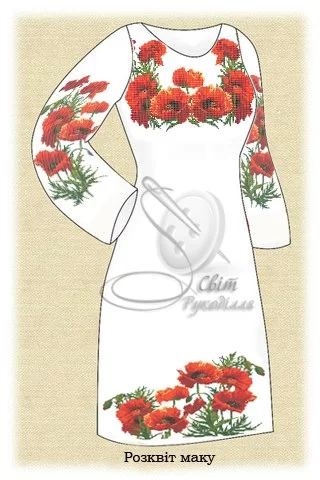 Заготовка під вишивку сукні. Заготовка НЕ ПОШИТА. Вона складається з прямокутних відрізків тканини, які після вишивки необхідно розкроїти та сшити по своєму фасону і розміру. Розміри відрізків на заготовку - 75х115 см - 2 шт (на перед і спинку) для габардину і 70х115 см -2 шт, для домотканого полотна. Відрізки тканини на рукава - 60х75 см - 2 шт, для габардину і 60х70 см - 2 шт, для домотканого полотна. На темних тканинах друку немає! (До тканини додається водорозчинний флізелін з надрукованою схемою). Будь ласка, в коментарях до замовлення вказуйте бажаний колір тканини.
