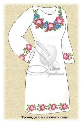 Заготовка під вишивку сукні. Заготовка НЕ ПОШИТА. Вона складається з прямокутних відрізків тканини, які після вишивки необхідно розкроїти та сшити по своєму фасону і розміру. Розміри відрізків на заготовку - 75х115 см - 2 шт (на перед і спинку) для габардину і 70х115 см -2 шт, для домотканого полотна. Відрізки тканини на рукава - 60х75 см - 2 шт, для габардину і 60х70 см - 2 шт, для домотканого полотна. На темних тканинах друку немає! (До тканини додається водорозчинний флізелін з надрукованою схемою). Будь ласка, в коментарях до замовлення вказуйте бажаний колір тканини.