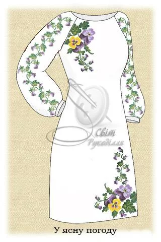 Заготовка під вишивку сукні. Заготовка НЕ ПОШИТА. Вона складається з прямокутних відрізків тканини, які після вишивки необхідно розкроїти та сшити по своєму фасону і розміру. Розміри відрізків на заготовку - 75х115 см - 2 шт (на перед і спинку) для габардину і 70х115 см -2 шт, для домотканого полотна. Відрізки тканини на рукава - 60х75 см - 2 шт, для габардину і 60х70 см - 2 шт, для домотканого полотна. На темних тканинах друку немає! (До тканини додається водорозчинний флізелін з надрукованою схемою). Будь ласка, в коментарях до замовлення вказуйте бажаний колір тканини.