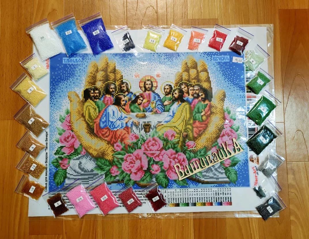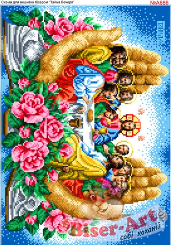 Схема під вишивку бісером. Друк на габардині. Розмір 30х42 см. До схеми додається список рекомендованих кольорів бісеру.