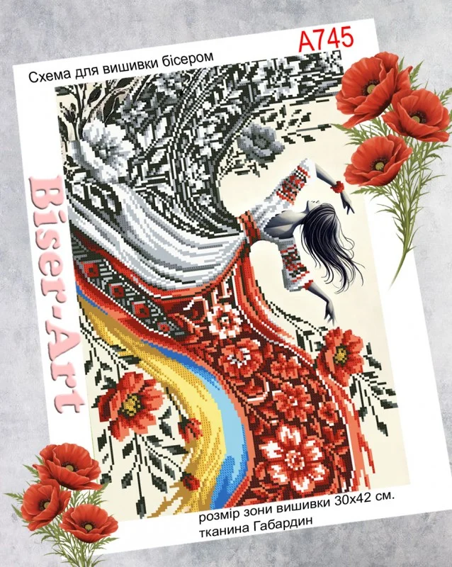 Схема під вишивку бісером. Друк на габардині. Розмір 30х42 см. До схеми додається список рекомендованих кольорів бісеру.
