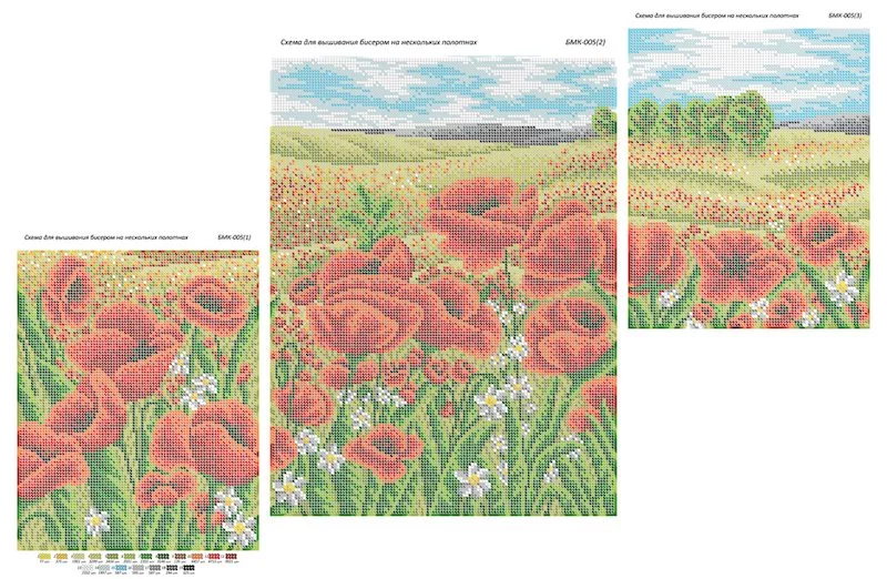 Модульна картина під вишивку бісером. Друк на габардині. Заготовка складається з трьох окремих схем: 2 шт - 19х23 см, 1 шт -27х36 см