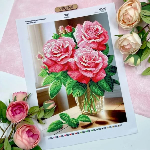 Схема під вишивку бісером. Друк на габардині. Розмір 36,5х27 см. До схеми додається список рекомендованих кольорів бісеру.