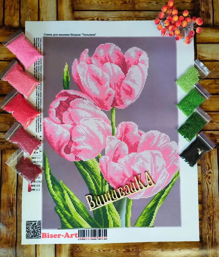 Схема під вишивку бісером. Друк на габардині. Розмір 30х42 см. До схеми додається список рекомендованих кольорів бісеру.