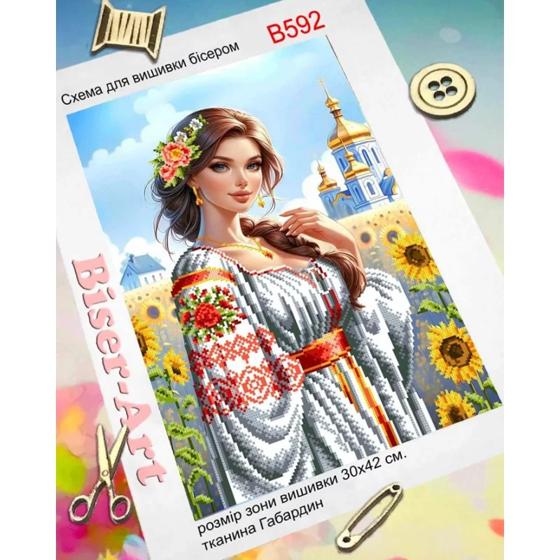 Схема під вишивку бісером.Друк на габардині. До схеми додається список рекомендованих кольорів бісеру.Розмір 30х42см