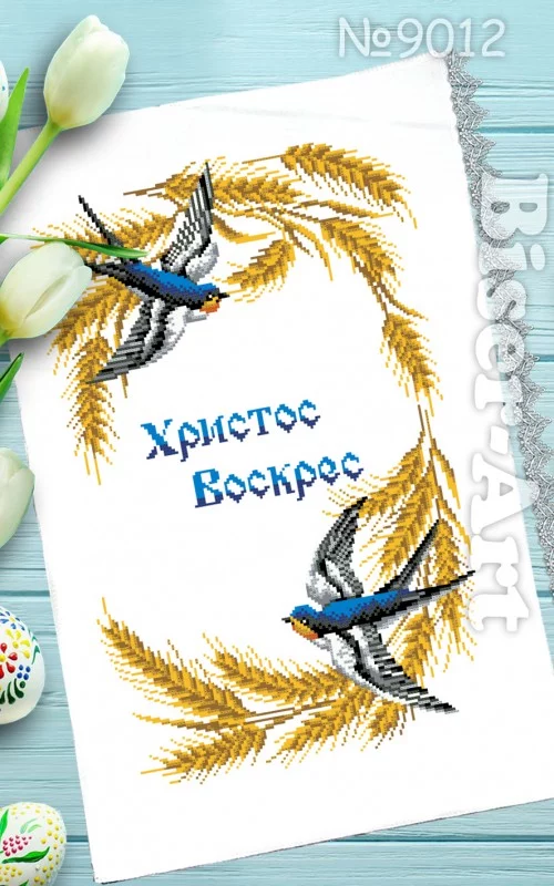 Заготовка під вишивку рушничка на великодній кошик. Розмір заготовки 30х50 см. До схеми додається список рекомендованих кольорів бісеру.