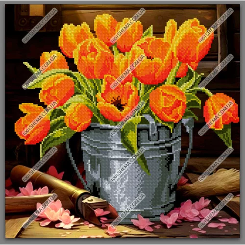 Схема під вишивку бісером. Друк на габардині. Розмір 35х35 см. До схеми додається список рекомендованих кольорів бісеру.