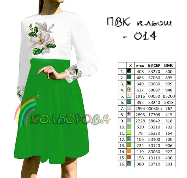 - титулка-ключ з рекомендованими кольорами бісеру Preciosa або муліне DMC та їх кількістю.