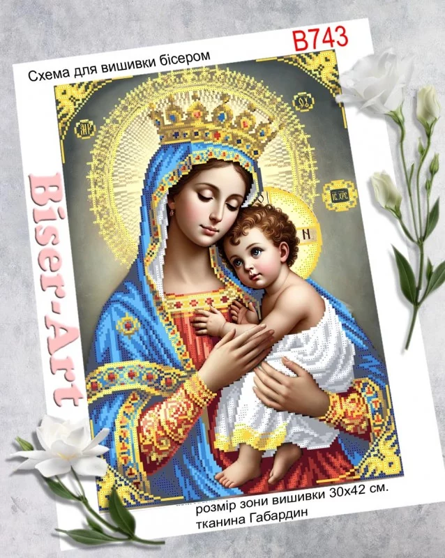 Схема під вишивку бісером. Друк на габардині. Розмір 30х42 см. До схеми додається список рекомендованих кольорів бісеру.