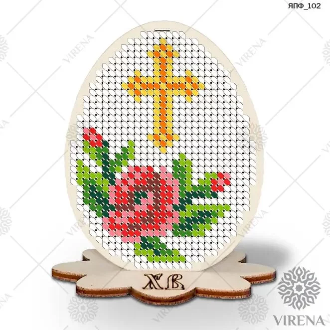 Склад комплекту: фанерна заготовка яйця та підставка, атласна стрічка, інструкція двосторонньої вишивки бісером, вкладка з зображенням декору, бісер