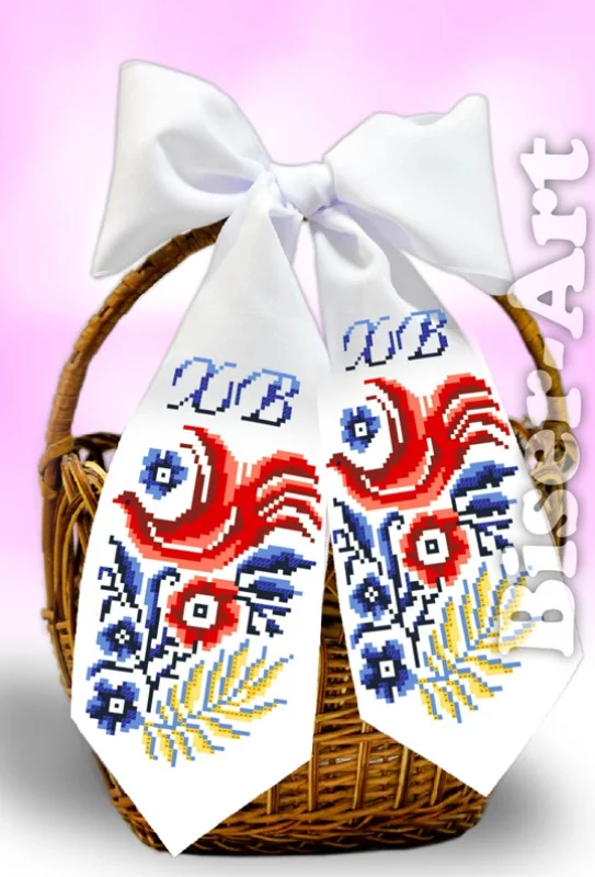 Бант на кошик під вишивку бісером. Друк на габардині. Розмір заготовки 12х150 мм. До заготовки додається список рекомендованих кольорів бісеру.