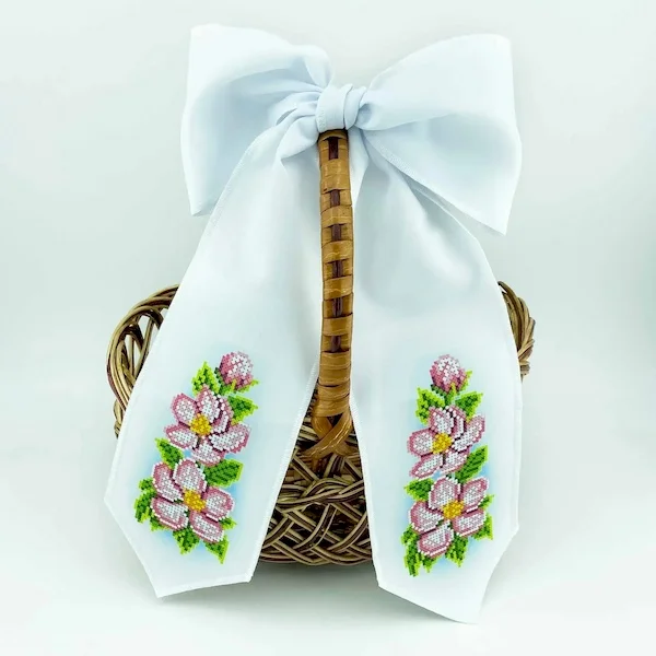 Бант для вишивки бісером на габардині, який проклеєний флізеліном у місцях вишивки.
