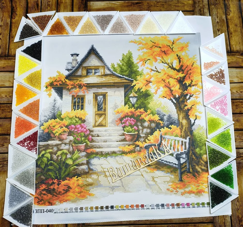 Схема під вишивку бісером. Друк на атласі. Розмір 40х40 см. До схеми додається список рекомендованих кольорів бісеру.