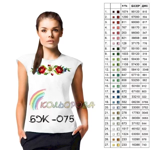 - титулка-ключ з рекомендованими кольорами бісеру Preciosa або муліне DMC та їх кількістю.