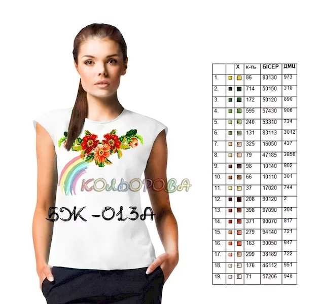 - титулка-ключ з рекомендованими кольорами бісеру Preciosa або муліне DMC та їх кількістю.