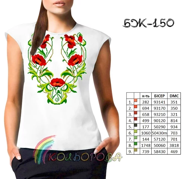 - титулка-ключ з рекомендованими кольорами бісеру Preciosa або муліне DMC та їх кількістю.