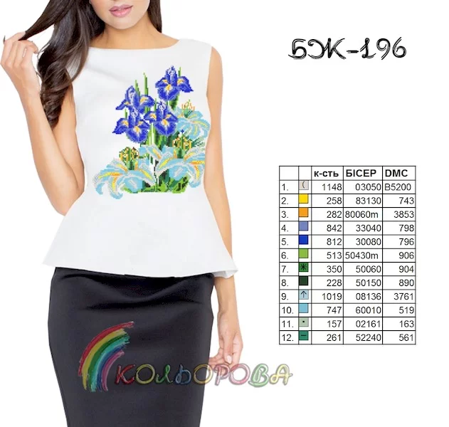 - титулка-ключ з рекомендованими кольорами бісеру Preciosa або муліне DMC та їх кількістю.