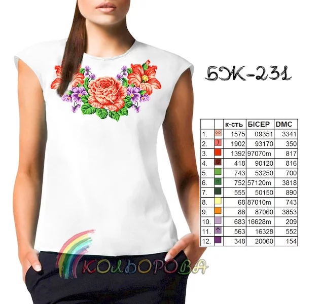 - титулка-ключ з рекомендованими кольорами бісеру Preciosa або муліне DMC та їх кількістю.
