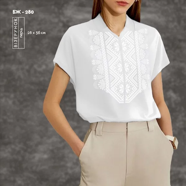 - на чорній (темній) тканині малюнок не наноситься. Малюнок друкується на водорозчинному флізеліні, який додається у комплект. Ціна заготовки не змінюється, але вишивати менш зручно.