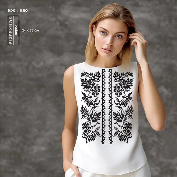 - на чорній (темній) тканині малюнок не наноситься. Малюнок друкується на водорозчинному флізеліні, який додається у комплект. Ціна заготовки не змінюється, але вишивати менш зручно.