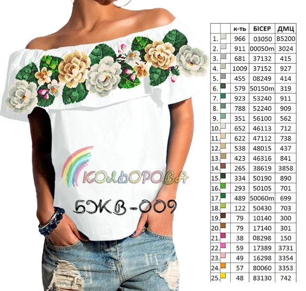 - титулка-ключ з рекомендованими кольорами бісеру Preciosa або муліне DMC та їх кількістю.