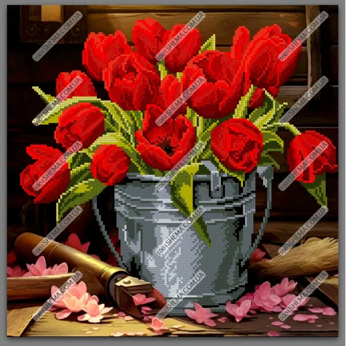 Схема під вишивку бісером. Друк на габардині. Розмір 35х35 см. До схеми додається список рекомендованих кольорів бісеру.