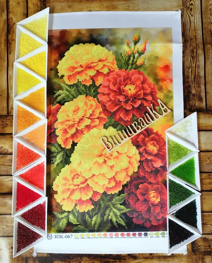 Схема під вишивку бісером. Друк на аталсі. Розмір 25х40 см. До схеми додається список рекомендованих кольорів бісеру.
