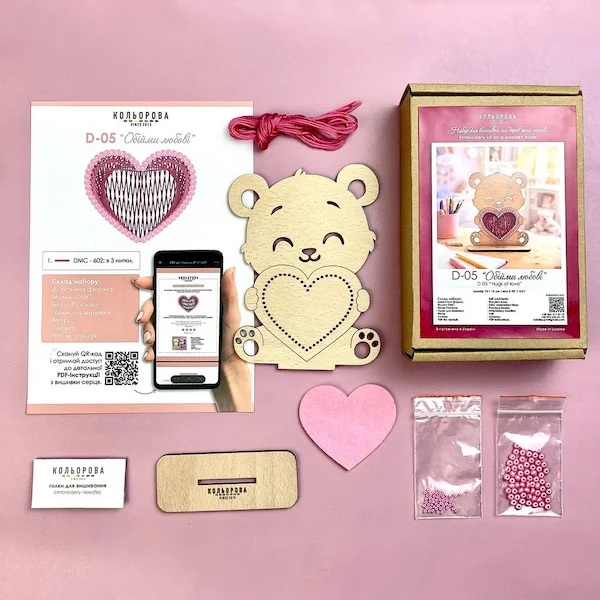 Декор D-05 «Обійми любові» — це універсальний набір 2 в 1, який поєднує процес вишивки та готовий декоративний виріб. Ви не просто вишиваєте, а створюєте повноцінний декор ручної роботи, готовий до використання в інтер’єрі або як подарунок. Після завершення роботи виріб перетворюється на декоративний елемент на дерев’яній основі, який не потребує додаткового оформлення.