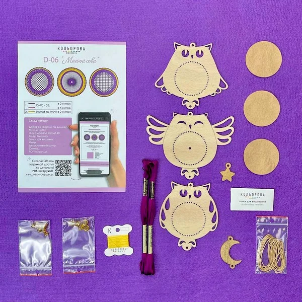 Декор D-05 «Магічні сови» — це унікальний набір 2 в 1, який поєднує захопливий процес вишивки та готовий декоративний виріб. Ви не просто створюєте вишивку, а формуєте повноцінний елемент декору ручної роботи, який стане виразною прикрасою інтер’єру або особливим подарунком. Завдяки дерев’яній основі виріб після завершення роботи виглядає завершено та не потребує додаткового оформлення.