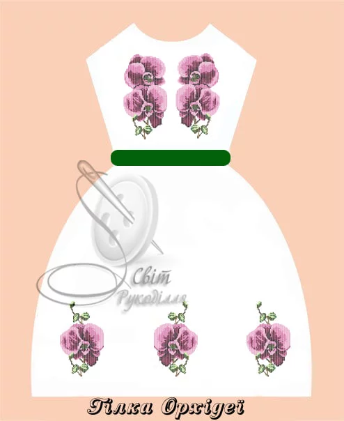 Заготовка під вишивку дитячої сукні зі стрічкою. Заготовка НЕ ПОШИТА. Вона складається з прямокутних відрізків тканини, які після вишивки необхідно розкроїти та сшити по своєму фасону і розміру. Розміри відрізків на заготовку - 50х45 см - два відрізки на верхню частину сукні, 50х60 см - два відрізки на низ сукні. Орієнтовно сукня розрахована для пошиття на дівчаток 4-12 років