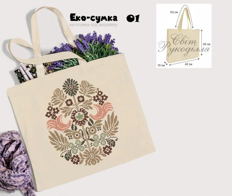 Пошита заготовка під вишивку еко-торбинки. Матеріал домоткане-льон. Розміри заготовки 42х35х10 см. Довжина ручки 60 см
