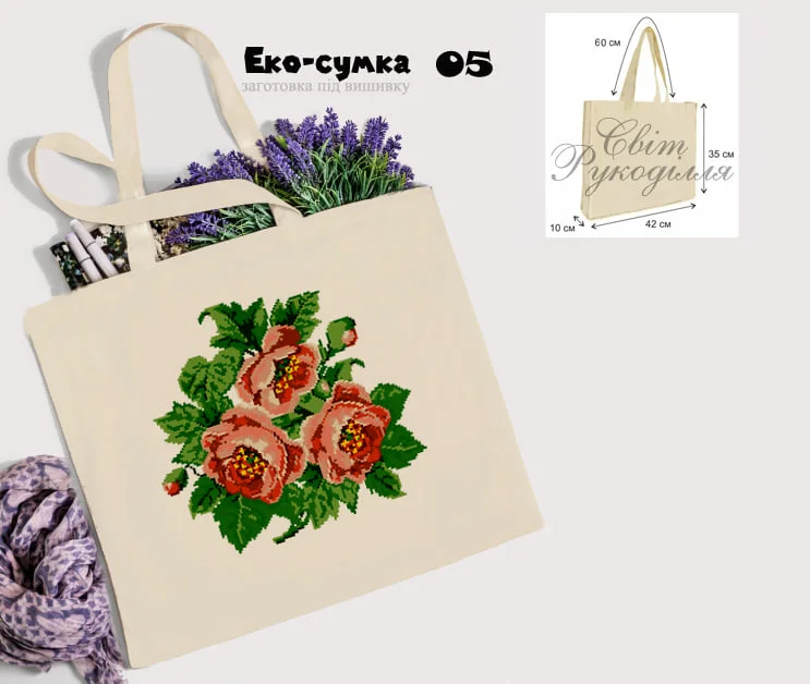 Пошита заготовка під вишивку еко-торбинки. Матеріал домоткане-льон. Розміри заготовки 42х35х10 см. Довжина ручки 60 см
