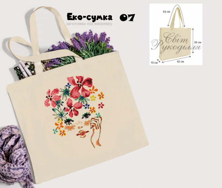 Пошита заготовка під вишивку еко-торбинки. Матеріал домоткане-льон. Розміри заготовки 42х35х10 см. Довжина ручки 60 см