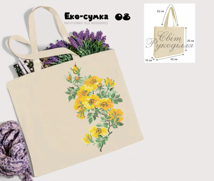 Пошита заготовка під вишивку еко-торбинки. Матеріал домоткане-льон. Розміри заготовки 42х35х10 см. Довжина ручки 60 см