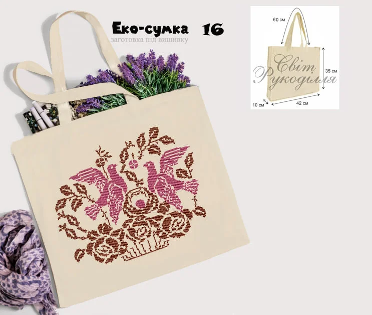 Пошита заготовка під вишивку еко-торбинки. Матеріал домоткане-льон. Розміри заготовки 42х35х10 см. Довжина ручки 60 см