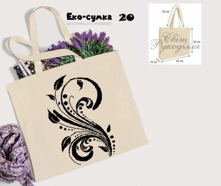 Пошита заготовка під вишивку еко-торбинки. Матеріал домоткане-льон. Розміри заготовки 42х35х10 см. Довжина ручки 60 см