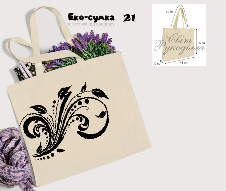 Пошита заготовка під вишивку еко-торбинки. Матеріал домоткане-льон. Розміри заготовки 42х35х10 см. Довжина ручки 60 см