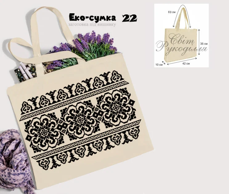 Пошита заготовка під вишивку еко-торбинки. Матеріал домоткане-льон. Розміри заготовки 42х35х10 см. Довжина ручки 60 см