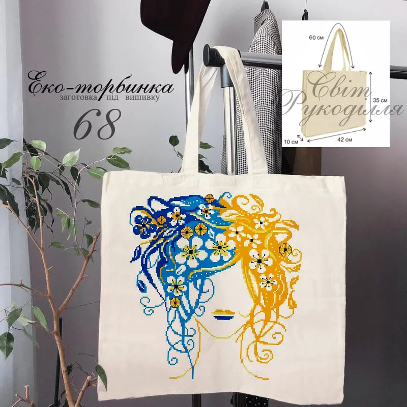 Пошита заготовка під вишивку еко-торбинки. Матеріал домоткане-льон. Розміри заготовки 42х35х10 см. Довжина ручки 60 см