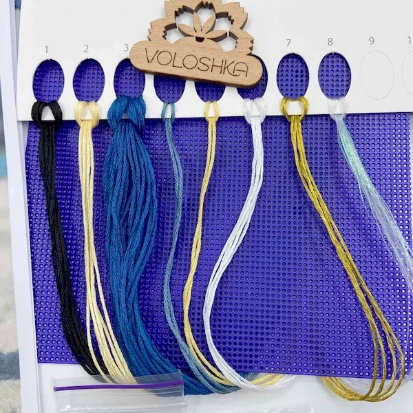 Іграшки мають передню та задню сторони. Після вишивання потрібно по контуру обрізати пластикову канву, скласти пластини виворітною стороною в середину і по контуру зшити.