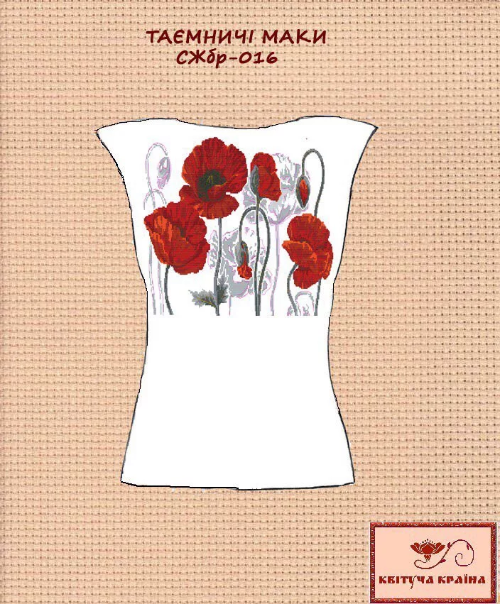 Фрагмент для вишивки. Виріжте орнамент, прикріпіть його до тканини за допомогою голки з ниткою і вишивайте бісером або нитками (хрестиком). Після вишивання замочіть виріб у мильному розчині - флізелін розчинеться, а вишивка лишиться. Орнамент можна використовувати для вишивання будь-яких текстильних виробів: сорочки, блузки, спідниці, брюки, та багато іншого. До флізеліну додається паперова схема.