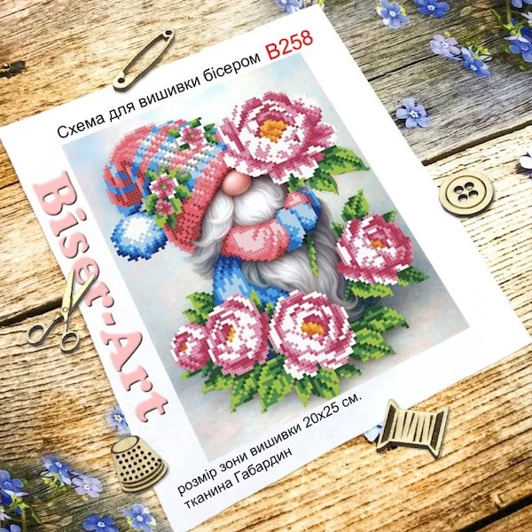 Схема під вишивку бісером. Друк на габардині. Розмір 20х25 см. До схеми додається список рекомендованих кольорів бісеру.