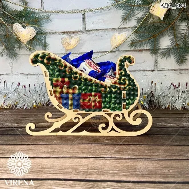 Набір з фанери для створення тематичного новорічного кошику для смаколиків, який має вишиватись бісером.