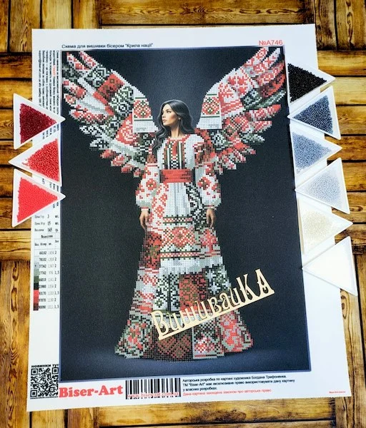 Схема під вишивку бісером. Друк на габардині. Розмір 30х42 см. До схеми додається список рекомендованих кольорів бісеру.